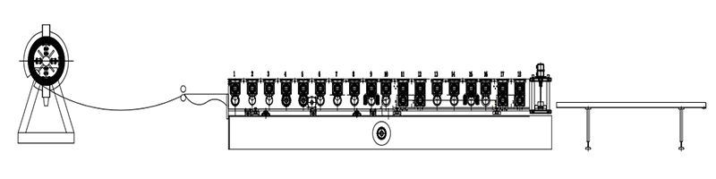 Decoiler→Feeding Guide Device→Leveling Devcie→Hydraulic Pre Cutting Device→Roll Forming System→Hydraulic Post Cutting Device→Exit Rack