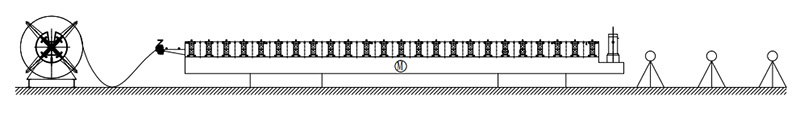 Decoiler→Manual Pre Cutter Device→Feed Guide Device→Rolling Forming System→Hydraulic Post Cutting Device→Exit Rack