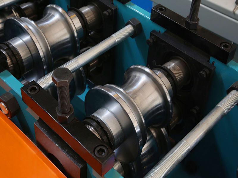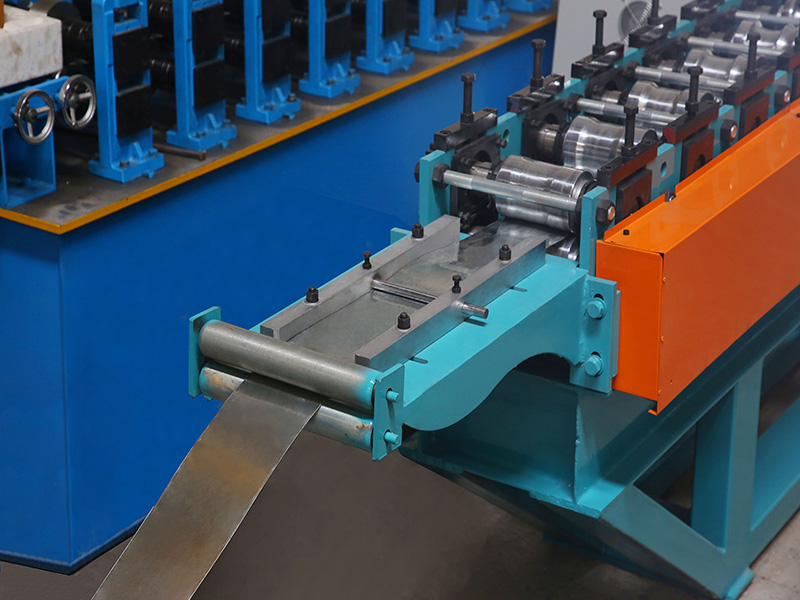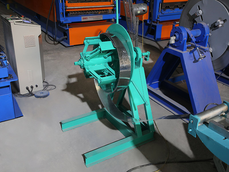 A left and right guiding device at the main entrance of the machine. During work,Raw materials on both sides of the plate the enter into the machine by the left and right guiding device,make the raw materials and roll forming system to maintain the correct position. The guiding position can be adjusted by the manual screw mechanism,and the left and right can be adjusted independently.