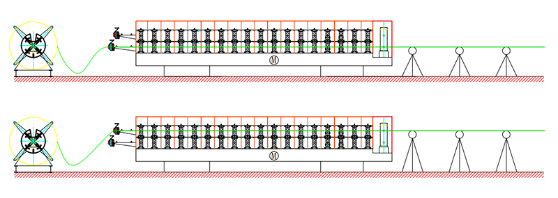 Decoiler→Manual Pre-Cutter→Feeding Guide Device→Roll Forming System→Hydraulic Post Cutter→Exit Rack