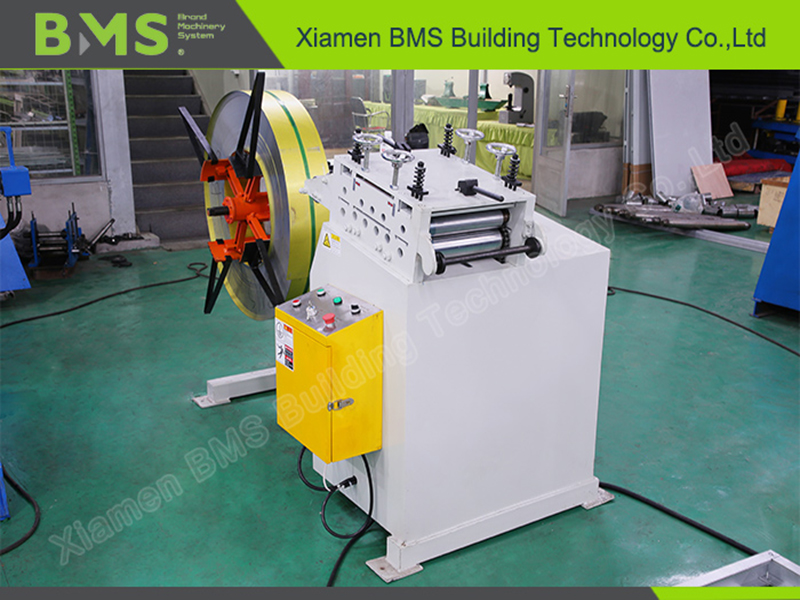 Left and right guiding device. The material enters into the main forming machine through left and right guiding device to reach the material feeding and leveling effect