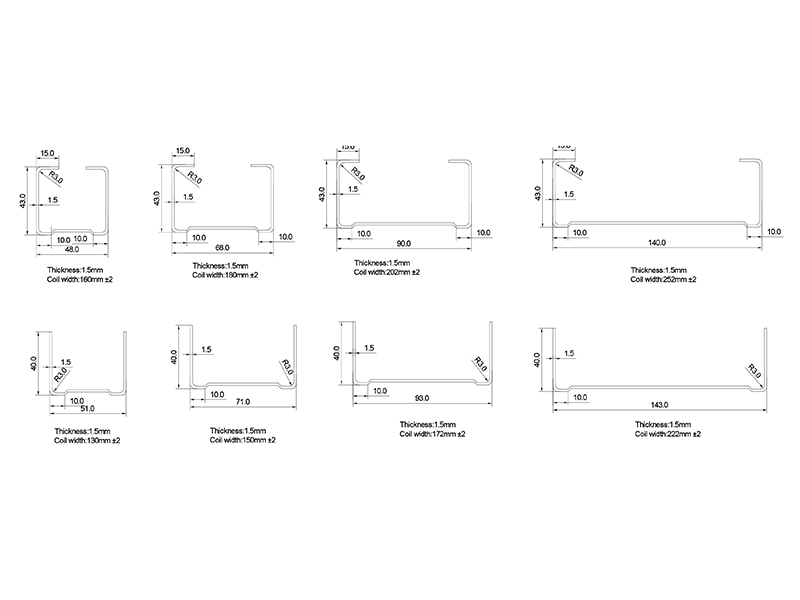 This Purlin Roll Forming Machine Can Produce different CU60-200 purlin size without changing rollers or spacers.