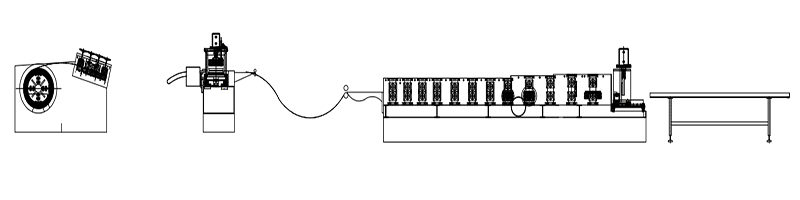 Decoiler & Leveling Device→Servo Motor Feeding & Punching Device→Feed Guide Device→Roll Forming System→Hydraulic Post Punching & Cutting Device→Exit Rack